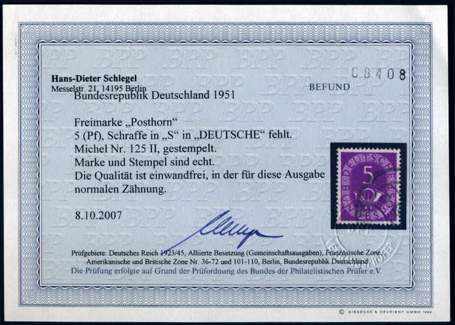 | Prüfer: | Schlegel, Hans-Dieter (BPP (Bund Philatelistischer Prüfer)) |
