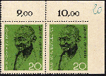 | Zusatzinformationen und Suchstichworte: | AAK Phila GmbH 81. Auktion 7. - 9. März 2024 Los 9355 Bundesrepublik Deutschland 20 Pf Gandhi im waagr. Paar re.o.Ecke, re. ungezähnt, postfr. Pracht Zuschlag 45,00 EUR |