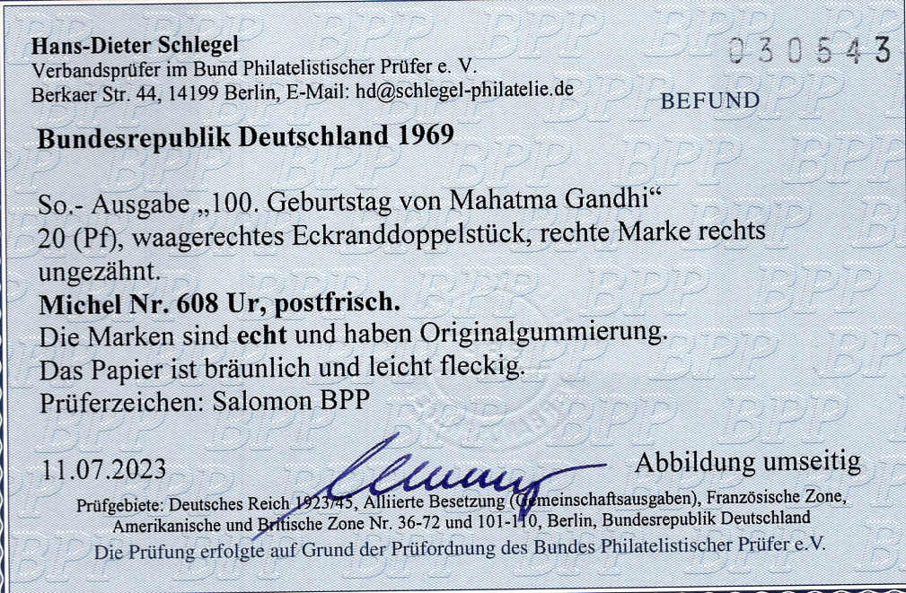 | Prüfer: | Schlegel, Hans-Dieter (BPP (Bund Philatelistischer Prüfer)) |