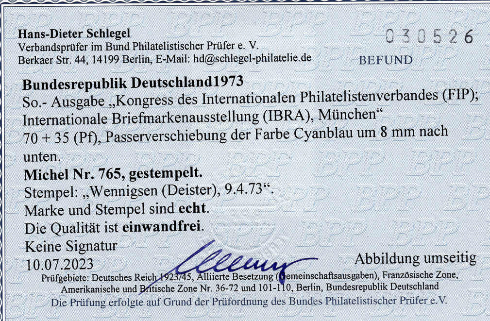 | Prüfer: | Schlegel, Hans-Dieter (BPP (Bund Philatelistischer Prüfer)) |