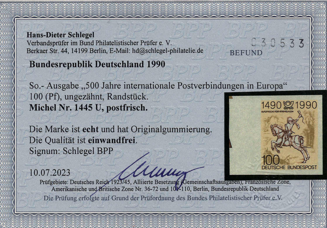 | Prüfer: | Schlegel, Hans-Dieter (BPP (Bund Philatelistischer Prüfer)) |