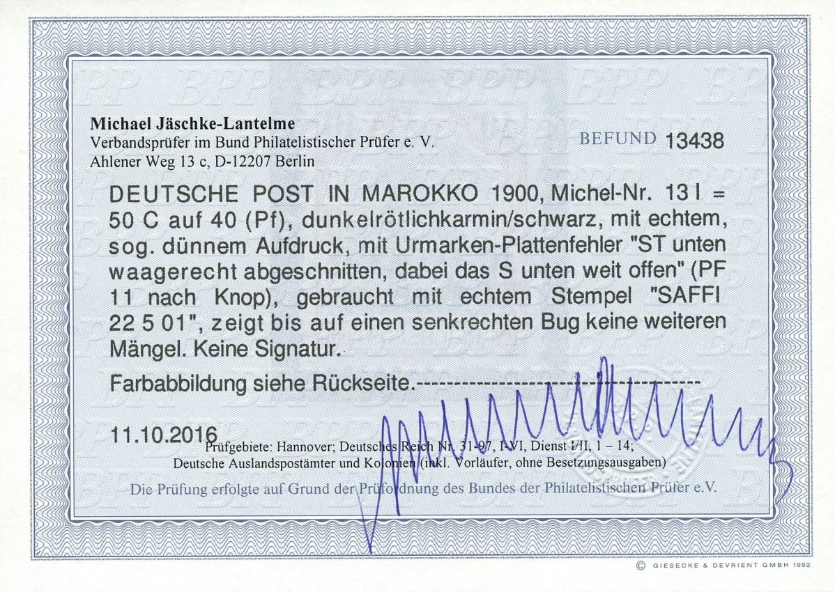 | Prüfgebiet: | Deutsche Auslandspostämter Marokko |