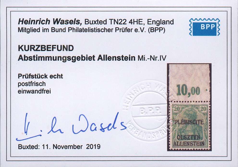 | Prüfer: | Wasels, Heinrich (BPP (Bund Philatelistischer Prüfer)) |