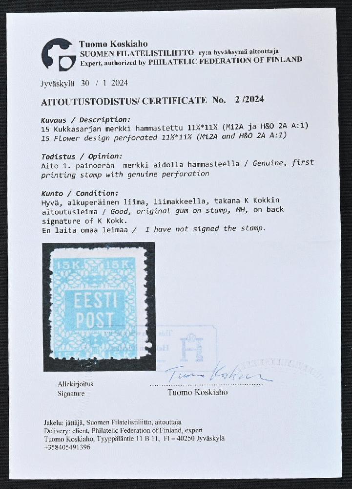 | Zusatzinformationen und Suchstichworte: | Hellman 131. Auktion 13. - 16. März 2024 Los 1618 Estland 1918 Blumen Ausgabe 15 kop Mi 2A (H&O 2A ein: 1), ungebraucht * Erstauflage Briefmarke mit echt Zähnung Ausruf 80,00 EUR |