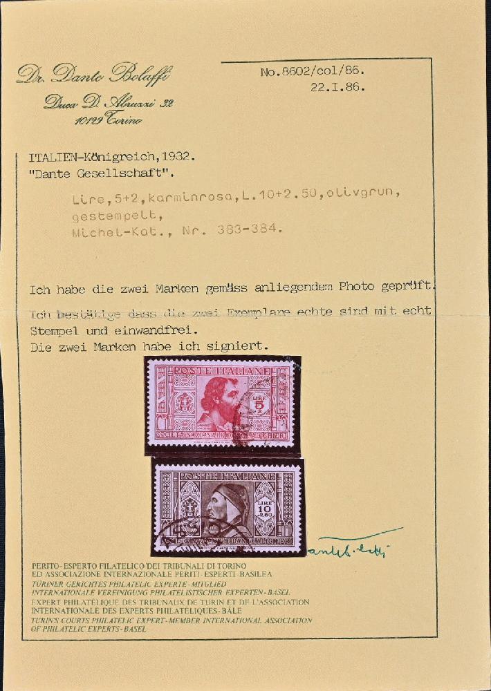 | Zusatzinformationen und Suchstichworte: | Hellman 131. Auktion 13. - 16. März 2024 Los 1254 Italien Königreich 1932 Dante 5L und 10L Mi 383-384, gestempelte Marken Ausruf 40,00 EUR |