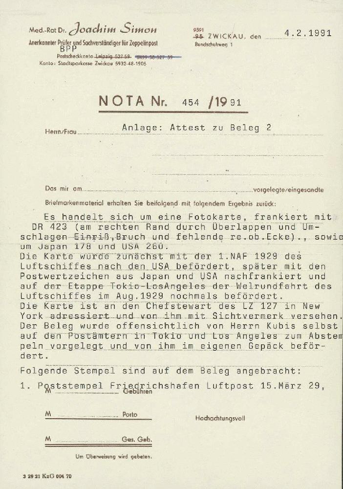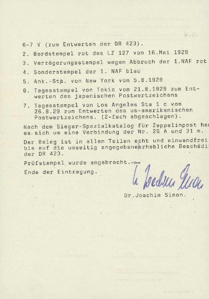 | Prüfgebiet: | Deutsches Reich Zeppelinpost (Belege) |