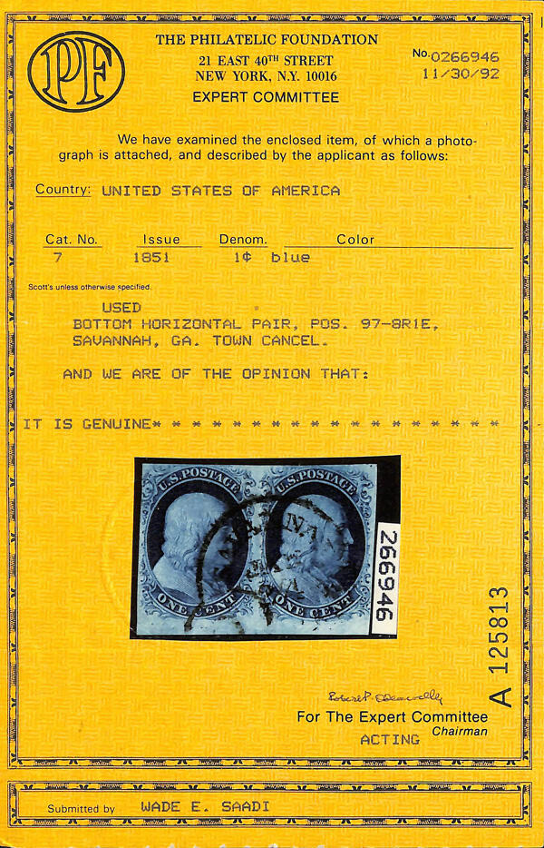 | Prüfer: | The Philatelic Foundation, (Prüferkommission) |