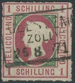 | Zusatzinformationen und Suchstichworte: | Ulrich Felzmann 180. Auktion 14. März 2024 Los 2642 Altdeutschland Helgoland 1 S mit voll aufsitzendem Teil-Ra3 GEESTEMÜNDE ZOLLVEREIN 26 8 71, bis auf eine marginale Bugspur einwandfrei in überdurchschnittlich attraktiver Gesamterhaltung, farbfrisch mit ringsum perfekt gelungener Durchstichtrennung Ausruf 90,00 EUR |