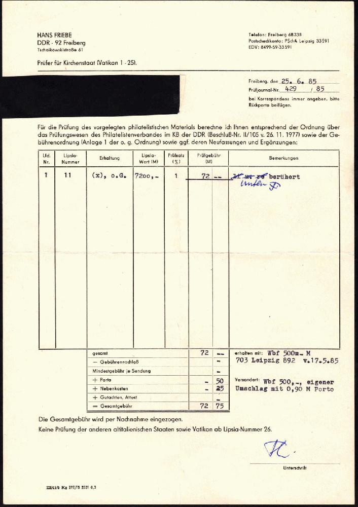 | Prüfer: | Friebe, Hans (Philatelistenverband im Kulturbund der DDR) |