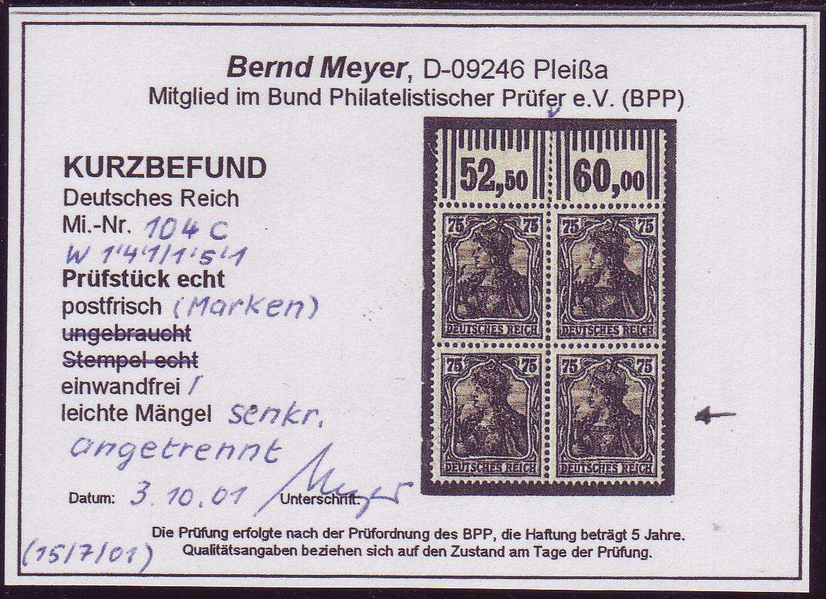 | Prüfer: | Meyer, Bernd (BPP (Bund Philatelistischer Prüfer)) |