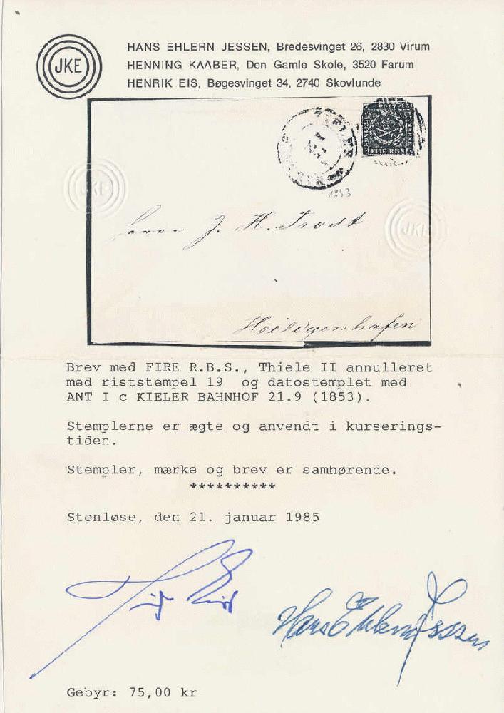 | Zusatzinformationen und Suchstichworte: | Postiljonen 240. & 241. Int. Briefmarken Auktion 19. - 22. März 2024 Los 86 Altdeutschland Schleswig Stempel auf Dänemark "Insurrection canc. 19" on cover from "KIELER BAHNHOF 21.9" (1853) to Heiligenhafen with a wide margin 4 RBS Thiele II dark redbrown. Ausruf 500,00 EUR |