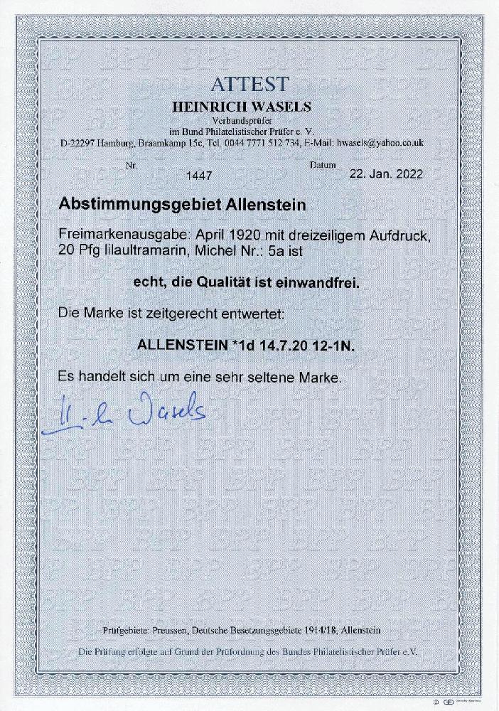 | Prüfer: | Wasels, Heinrich (BPP (Bund Philatelistischer Prüfer)) |