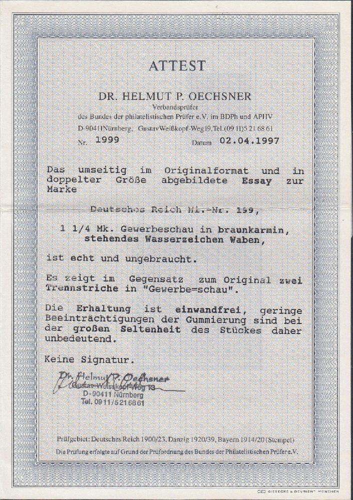 | Prüfgebiet: | Deutsches Reich Specimen, Probedrucke, Essay, Maschinenprobe |