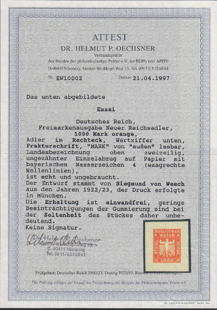 | Prüfgebiet: | Deutsches Reich Specimen, Probedrucke, Essay, Maschinenprobe |
