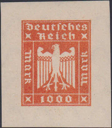 | Zusatzinformationen und Suchstichworte: | 205. Auktionshaus Schulz Auktion 15. - 16. März 2024 Los 6193 Deutsches Reich 1000 Mark orange Adler im Rechteck, seltenes Essay, ungezählter Einzelabzug auf Papier mit bayerischem Wz 4 (waagerechte Wellenlinien), Entwurf stammt vom Siegmund von Weech aus den Jahren 1922/1923, der Druck erfolgte in München Ausruf 200,00 EUR |