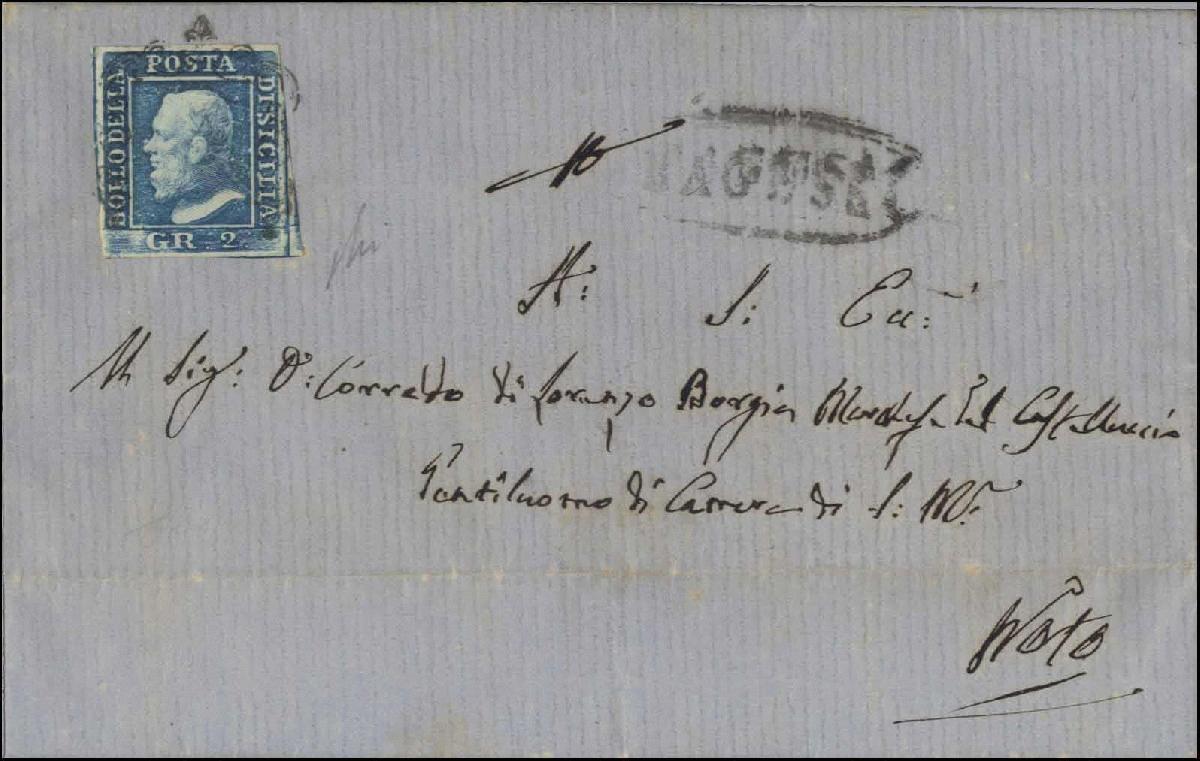 | Zusatzinformationen und Suchstichworte: | 205. Auktionshaus Schulz Auktion 15. - 16. März 2024 Los 4990 Italien Staaten Sizilien 1859, 2 Grana Freimarke König Ferdinand auf Brief mit Girlandenstempel u. der seltenen Oval-Entwertung "Ragusa" (Sassone R), sign. u. FFA Dr. Avi/Lugano "... echt ... farbfrische Marke, allseits breitrandig, leicht u. ideal gestempelt auf sauberem Brief mit vollem Inhalt vom "17. Januar 1860" in sehr guter Erhaltung....", archivfrischer Beleg dieser gr. Stempel-Rarität Ausruf 1.000,00 EUR |