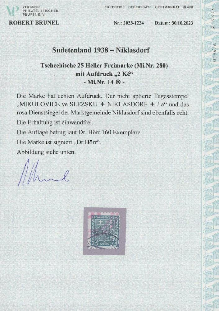 | Zusatzinformationen und Suchstichworte: | Ulrich Felzmann 180. Auktion 14. März 2024 Los 3197 Sudetenland Niklasdorf 2 Kc auf 25 H Wappen mit rotem Befreiungsstempelteil sowie Teilabschlag des nicht aptierten Ortsstempels MIKULOVICE VE SLEZSKU in fehlerfreier Prachterhaltung Ausruf 200,00 EUR |