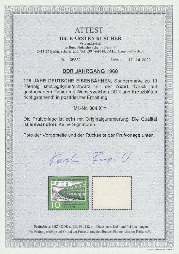 | Zusatzinformationen und Suchstichworte: | Ulrich Felzmann 180. Auktion 14. März 2024 Los 3470 DDR 10 Pfg Eisenbahn mit Abart "Druck auf gestrichenem Papier und richtig stehendem Wasserzeichen 3 X", postfrisch in unsignierter Top-Erhaltung Ausruf 600,00 EUR |