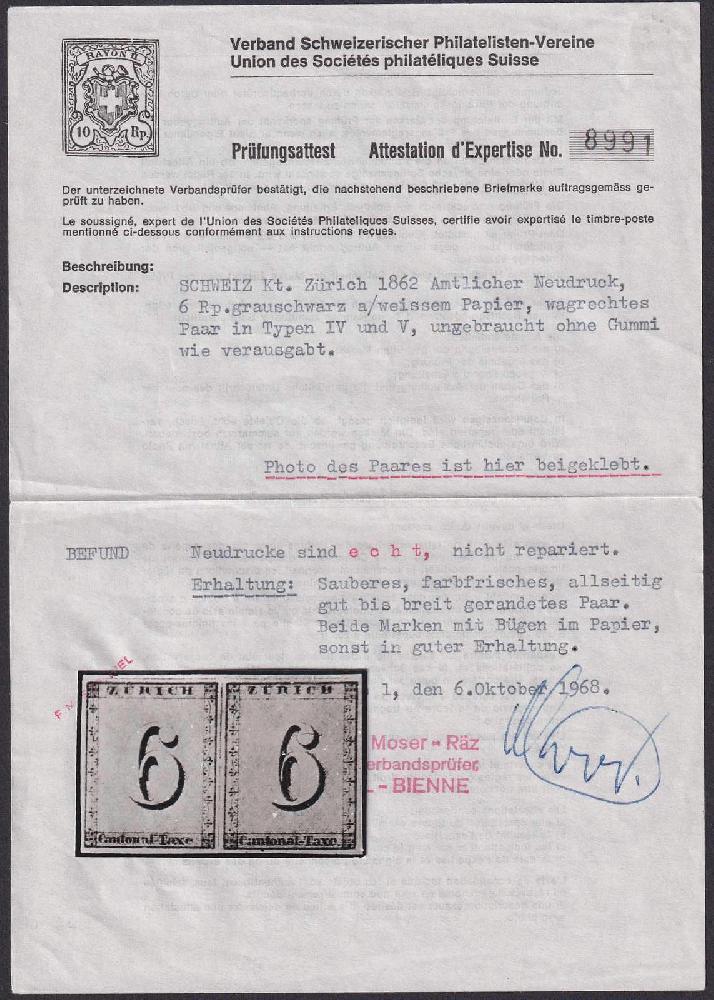 | Prüfer: | Moser-Räz, Fritz (SBPV / ASEP (Schweizerischer Briefmarken-Prüfer-Verband)) |