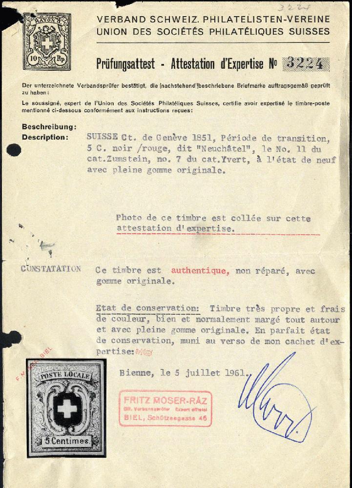 | Prüfer: | Moser-Räz, Fritz (SBPV / ASEP (Schweizerischer Briefmarken-Prüfer-Verband)) |