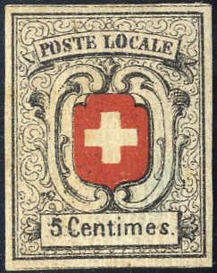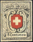 | Zusatzinformationen und Suchstichworte: | Viennafil 83. Live-Auktion 21. - 23. November 2023 Los 2117 Schweiz 1851, 5 C grauschwarz/dunkelzinnoberrot ungebraucht mit vollem Originalgummi Zuschlag 6.000,00 EUR |