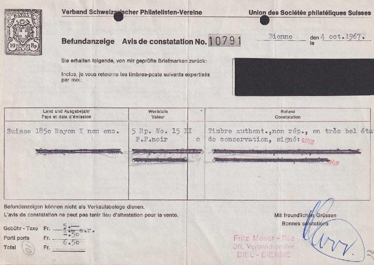 | Prüfer: | Moser-Räz, Fritz (SBPV / ASEP (Schweizerischer Briefmarken-Prüfer-Verband)) |