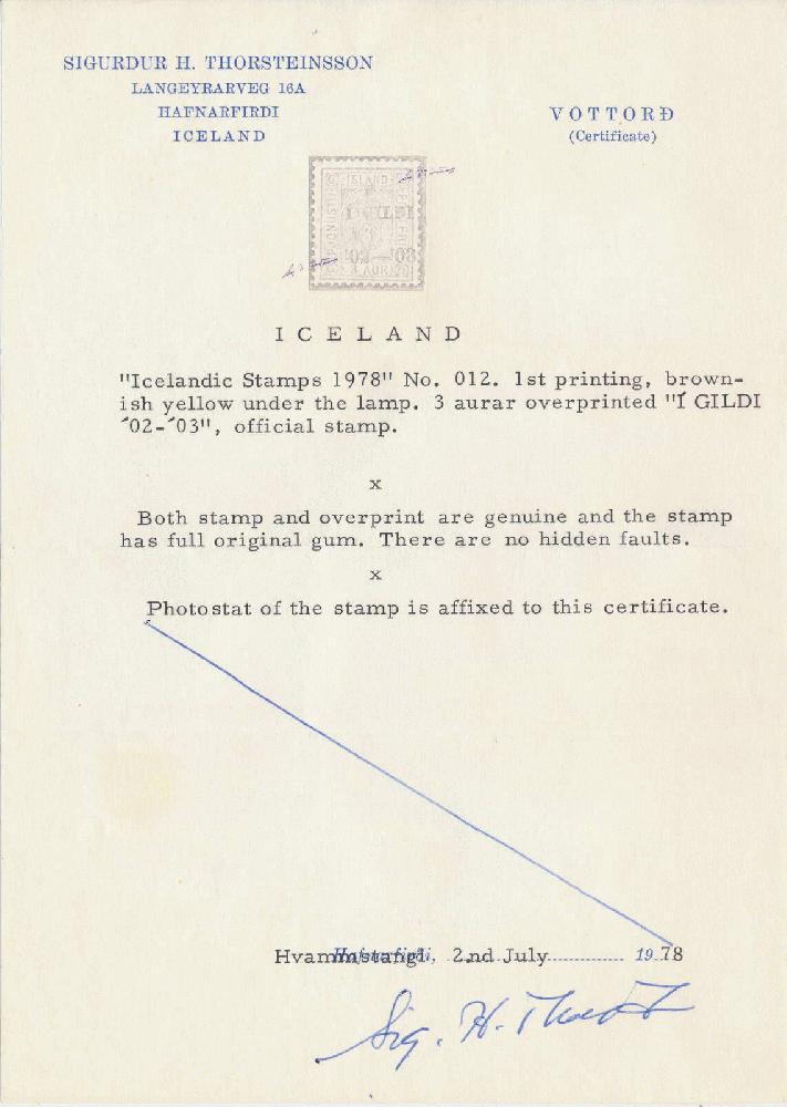 | Zusatzinformationen und Suchstichworte: | Postiljonen 240. & 241. Int. Briefmarken Auktion 19. - 22. März 2024 Los 1153 Island Never hinged copy of 3 aur brownish orange yellow from the first printing with Í Gildi overprint. F=6.500 Ausruf 100,00 EUR |