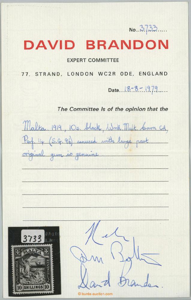 | Zusatzinformationen und Suchstichworte: | Burda 74. Auktion 9. -10. März 2024 Los 140 Malta 1919 SG. 96, St. Paul 10Sh schwarz, seltene Ausgabe mit Wasserzeichen Einheit CA; Kabinettbriefstück Zuschlag 1.469,00 EUR |