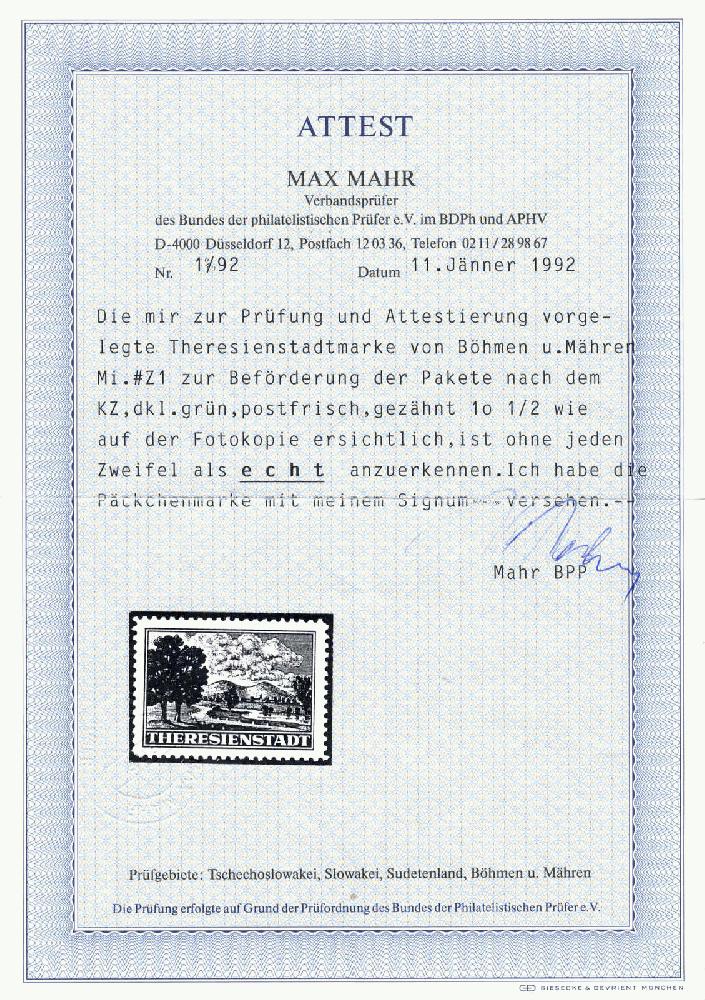 | Zusatzinformationen und Suchstichworte: | Viennafil 86. Fernauktion 27. Februar 2024 Los 13231 Böhmen und Mähren Theresienstadt 1944, Zulassungsmarke für Pakete, Ausruf 160,00 EUR |