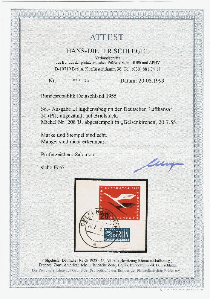 | Prüfer: | Schlegel, Hans-Dieter (BPP (Bund Philatelistischer Prüfer)) |