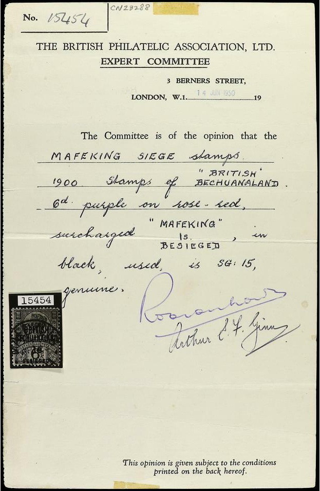 | Prüfer: | BPA, The British Philatelic Association Limit (Prüferkommission) |