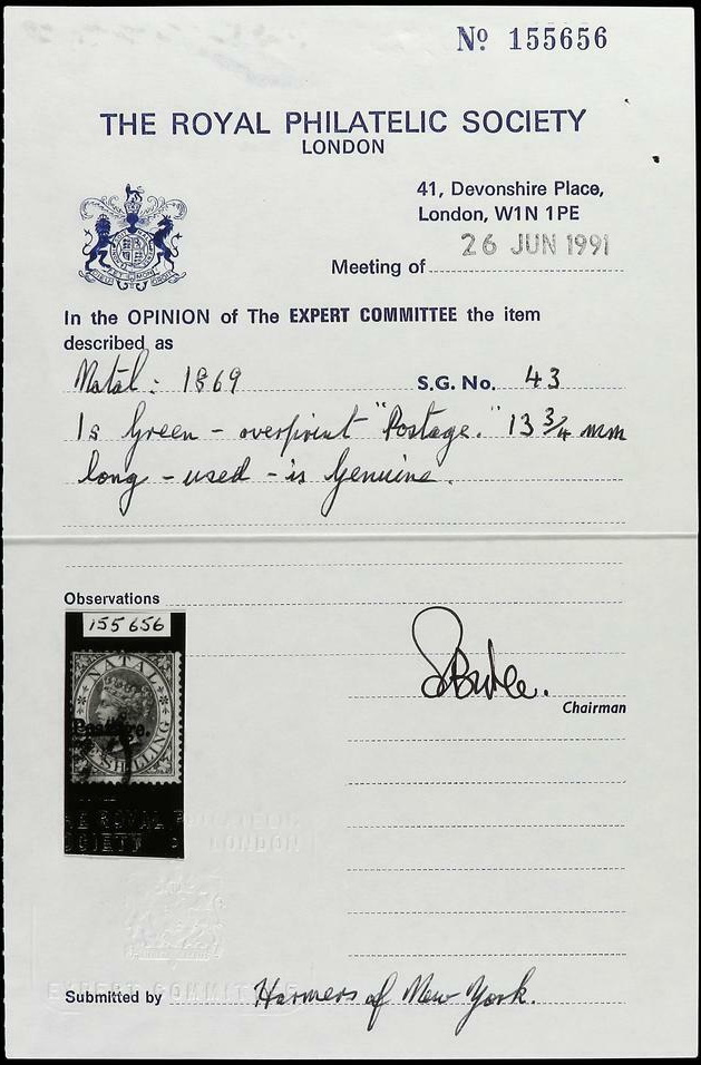 | Prüfer: | RPSL, Royal Philatelic Society (Prüferkommission) |