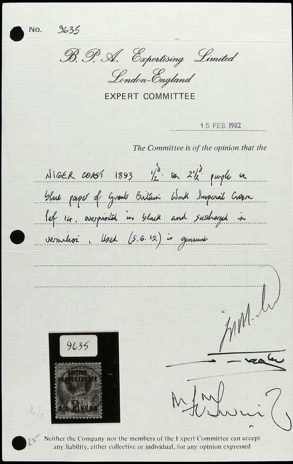 | Prüfgebiet: | Nigeria - Oil Rivers / Nigerküste |