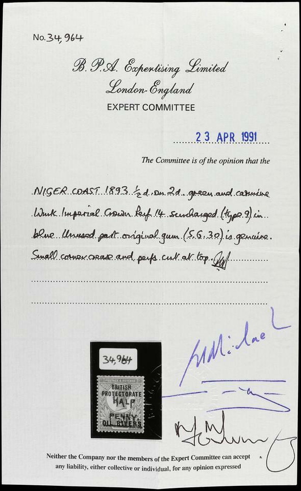 | Prüfgebiet: | Nigeria - Oil Rivers / Nigerküste |
