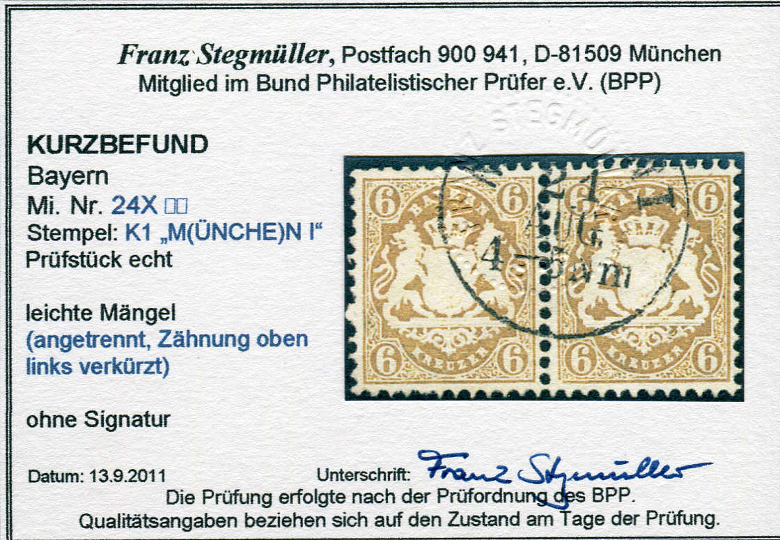 | Prüfer: | Stegmüller, Franz (BPP (Bund Philatelistischer Prüfer)) |