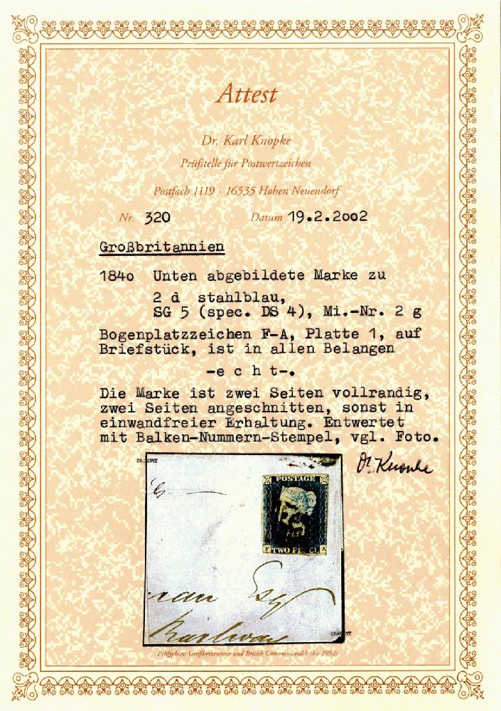 | Zusatzinformationen und Suchstichworte: | 76. Hadersbeck Auktion 16. - 17. April 2024 Los 805 Grossbritannien 1840 1d schwarz 1840, 2 P. mattgraublau, Platte 1, 2 Seiten vollrandig und 2 Seiten angeschnitten, auf Briefstück mit Balken-NSt. Ausruf 150,00 EUR |