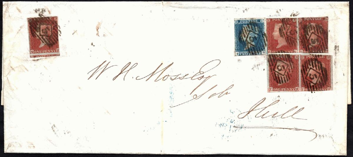| Zusatzinformationen und Suchstichworte: | 76. Hadersbeck Auktion 16. - 17. April 2024 Los 825 Grossbritannien 1840 1d schwarz 1852, 17.3., 1 P. braunrot, Platte 130, 5 Werte mit 2 P. blau, Platte 4 auf langformatigem Faltbrief ab London, mit Balken-NSt. "5", rücks. Ank.-St. Ausruf 100,00 EUR |
