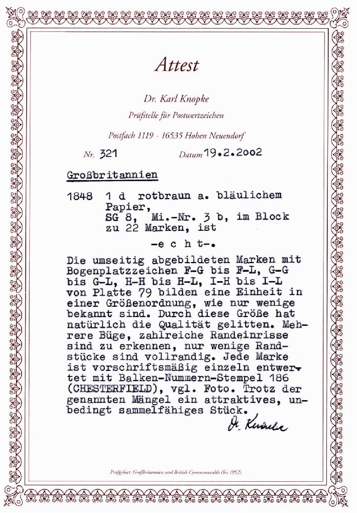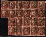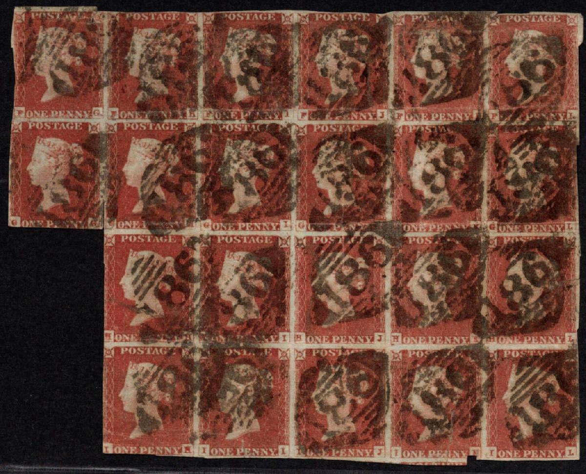 | Zusatzinformationen und Suchstichworte: | 76. Hadersbeck Auktion 16. - 17. April 2024 Los 832 Grossbritannien 1840 1d schwarz 1848, 1 P. rotbraun a. bläulichem Papier, seltene Einheit von 22 Werten, Platte 79, mehrere Büge und zahlreiche Randeinrisse, nur wenige Randstücke vollrandig, jede Marke mit Balken-NSt. "186" (Chesterfield) Ausruf 220,00 EUR |