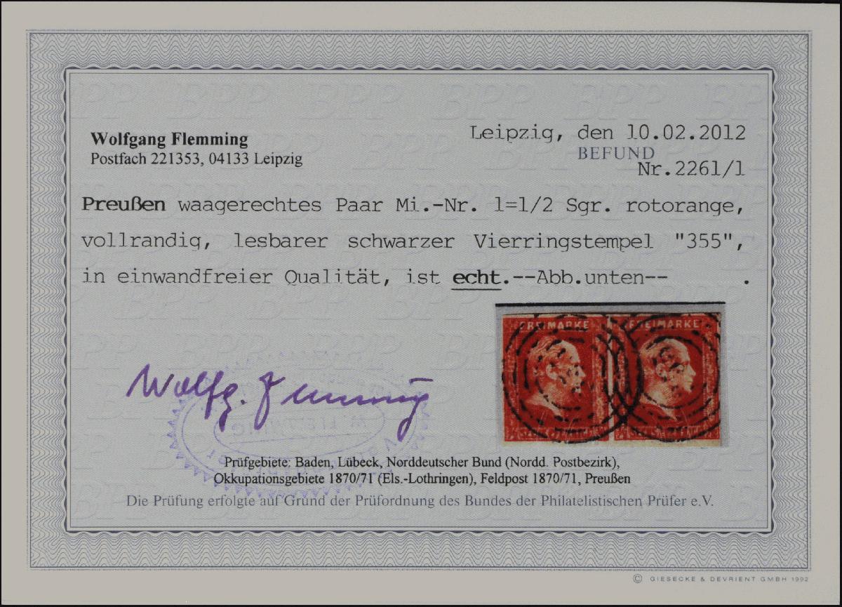 | Zusatzinformationen und Suchstichworte: | Nummernstempel "355" ex Sammlung Sanssouci (171. Dr. Reinhard Fischer Auktion) |