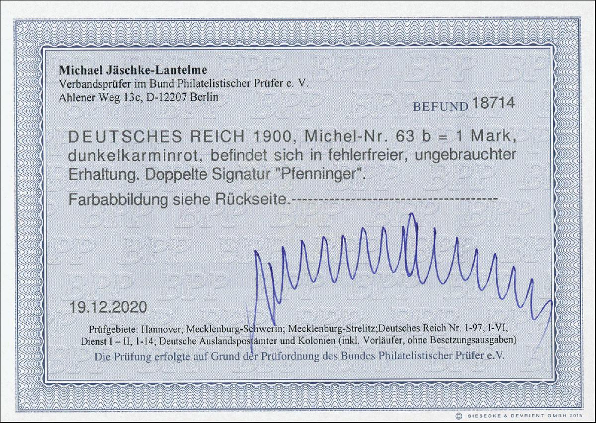 | Prüfgebiet: | Deutsches Reich 1871 - 1918 (Mi-Nr. 1 - 106) |