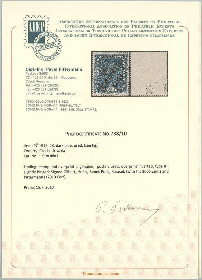 | Prüfer: | Pittermann, Pavel (AIEP (Association internationale des experts en philatélie)) |