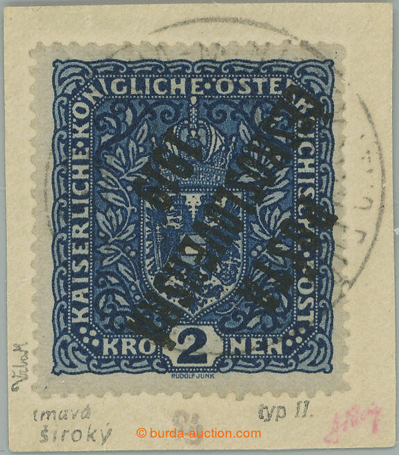 | Zusatzinformationen und Suchstichworte: | Burda 74. Auktion 9. -10. März 2024 Los 2202 Tschechoslowakei 1918-1939 Kopfstehender Aufdruck/Pof. 48a II Pp Plattenprobedruck, Wappen 2 K dunkelblau, breitformatiger mit kopfstehendem Aufdruck, II. Type, auf kleinen cut-square, Plattenprobedruck - bereits benutzt Austrina Briefmarke; Pracht, Zuschlag 1.143,00 EUR |