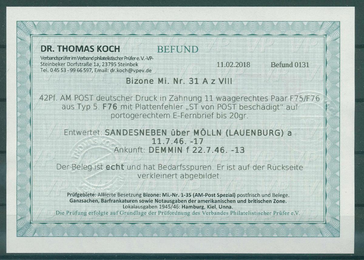 | Prüfgebiet: | Alliierte Besetzung Bizone |