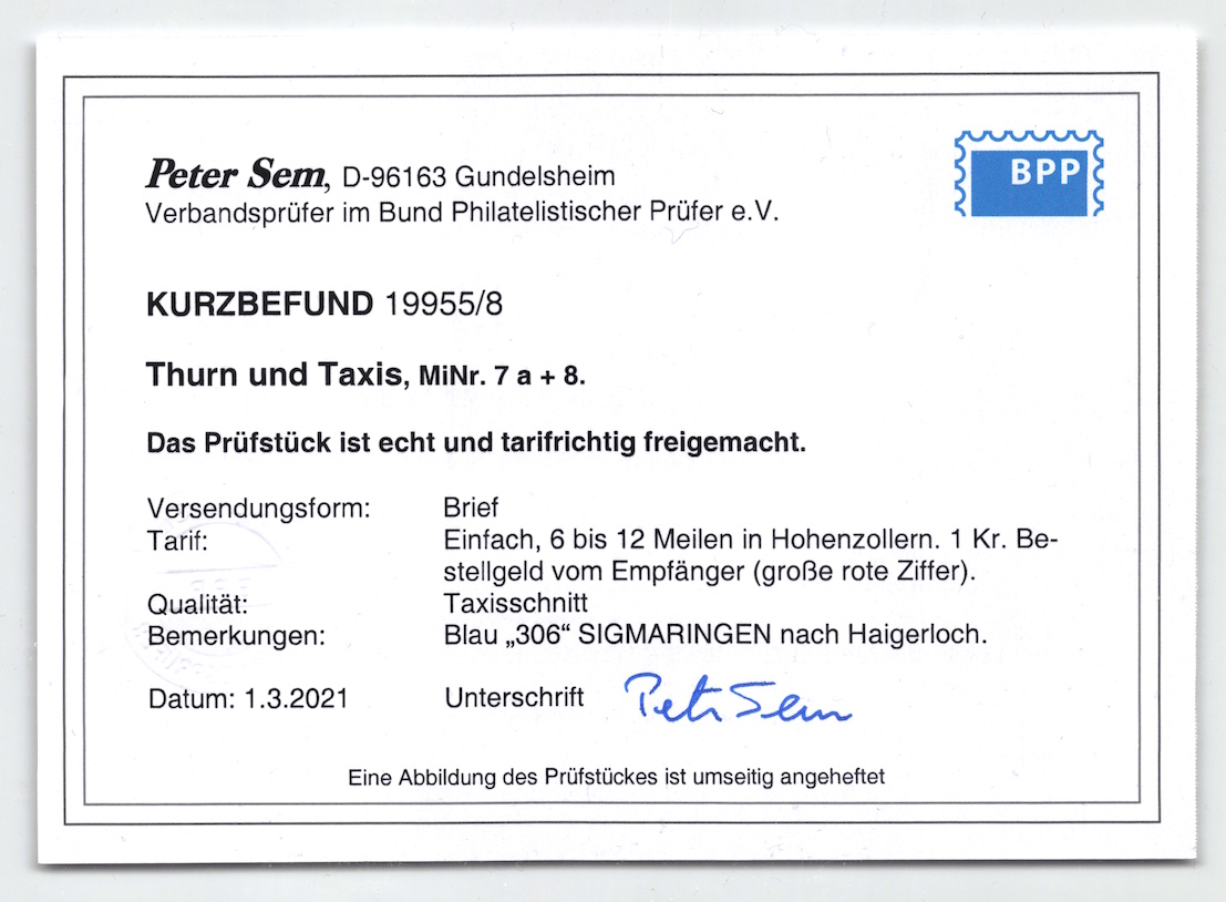 | Prüfgebiet: | Altdeutschland Thurn und Taxis |