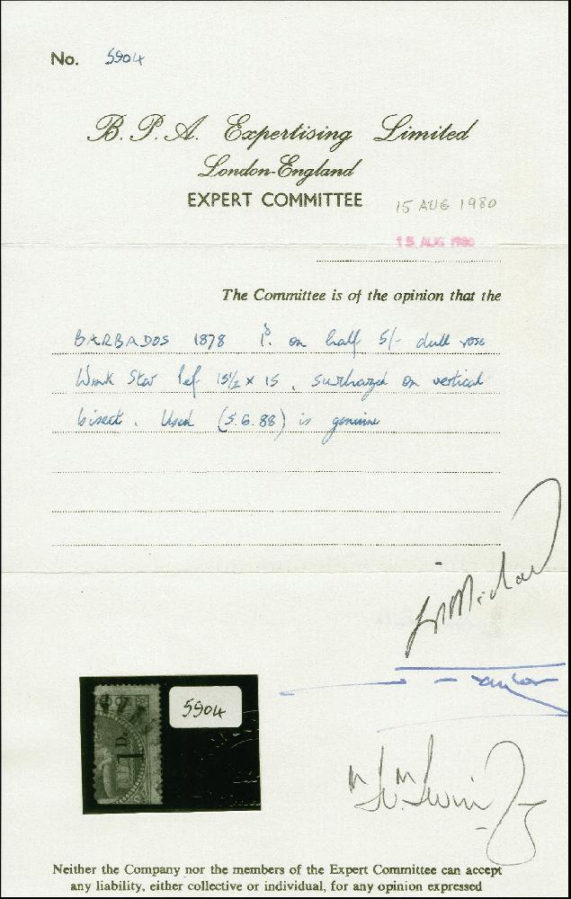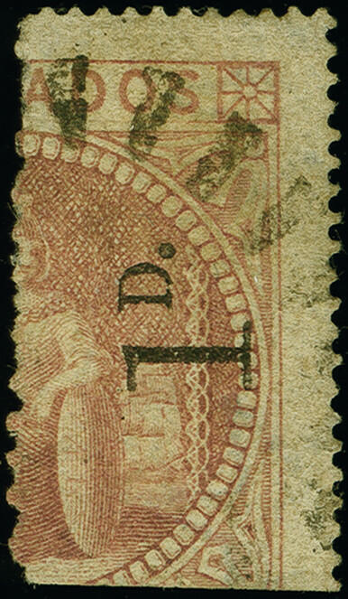 | Zusatzinformationen und Suchstichworte: | 383. Auktion Heinrich Köhler 14.–15. & 18.–23. März 2024 Los 1524 Barbados 1 d. auf halb von 5 s. Blassrosa, Type 3c (kleineren "1" und "D" ), gebraucht mit Teil vom bootheel Stempel, fein und selten Ausruf 250,00 EUR |