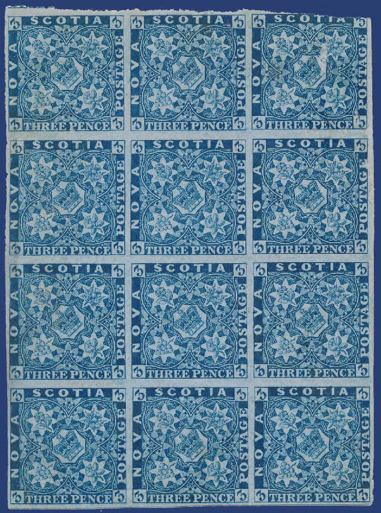 | Zusatzinformationen und Suchstichworte: | Postiljonen 240. & 241. Int. Briefmarken Auktion 19. - 22. März 2024 Los 201 Neuschottland Block of Twelve Very fresh multiple of 3d. deep blue, cut in at right in top margin, otherwise very good margins, some thinning on a few stamps. Zuschlag 4.400,00 EUR |