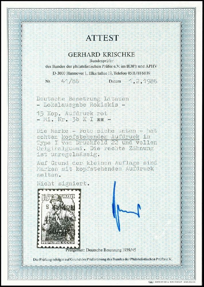 | Prüfgebiet: | Deutsche Besetzung WK 2 Litauen Rokiskis |