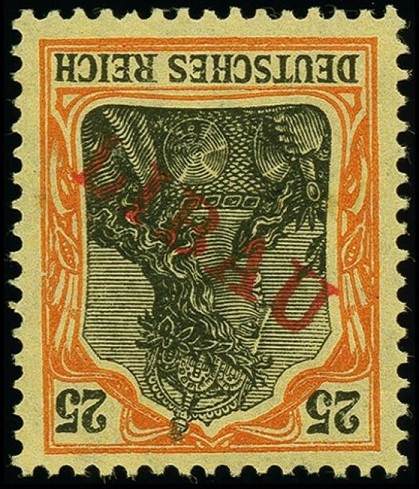 | Zusatzinformationen und Suchstichworte: | Ein ungebrauchtes Exemplar dieses Kopfstehers mit Attest wurde an der 383. Heinrich Köhler Auktion vom 20. März 2024 in Wiesbaden unter Los 7528 für 200 € + Aufgeld verkauft. |