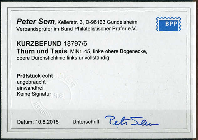 | Prüfgebiet: | Altdeutschland Thurn und Taxis |