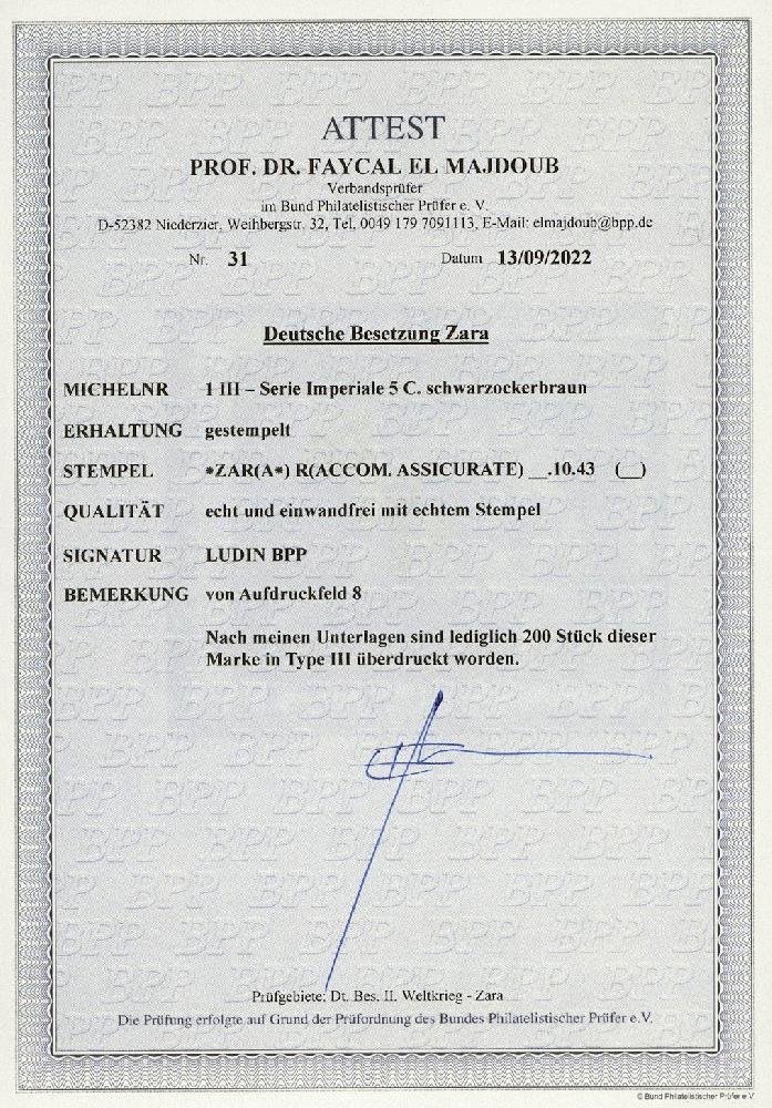 | Prüfgebiet: | Deutsche Besetzung WK 2 Zara |